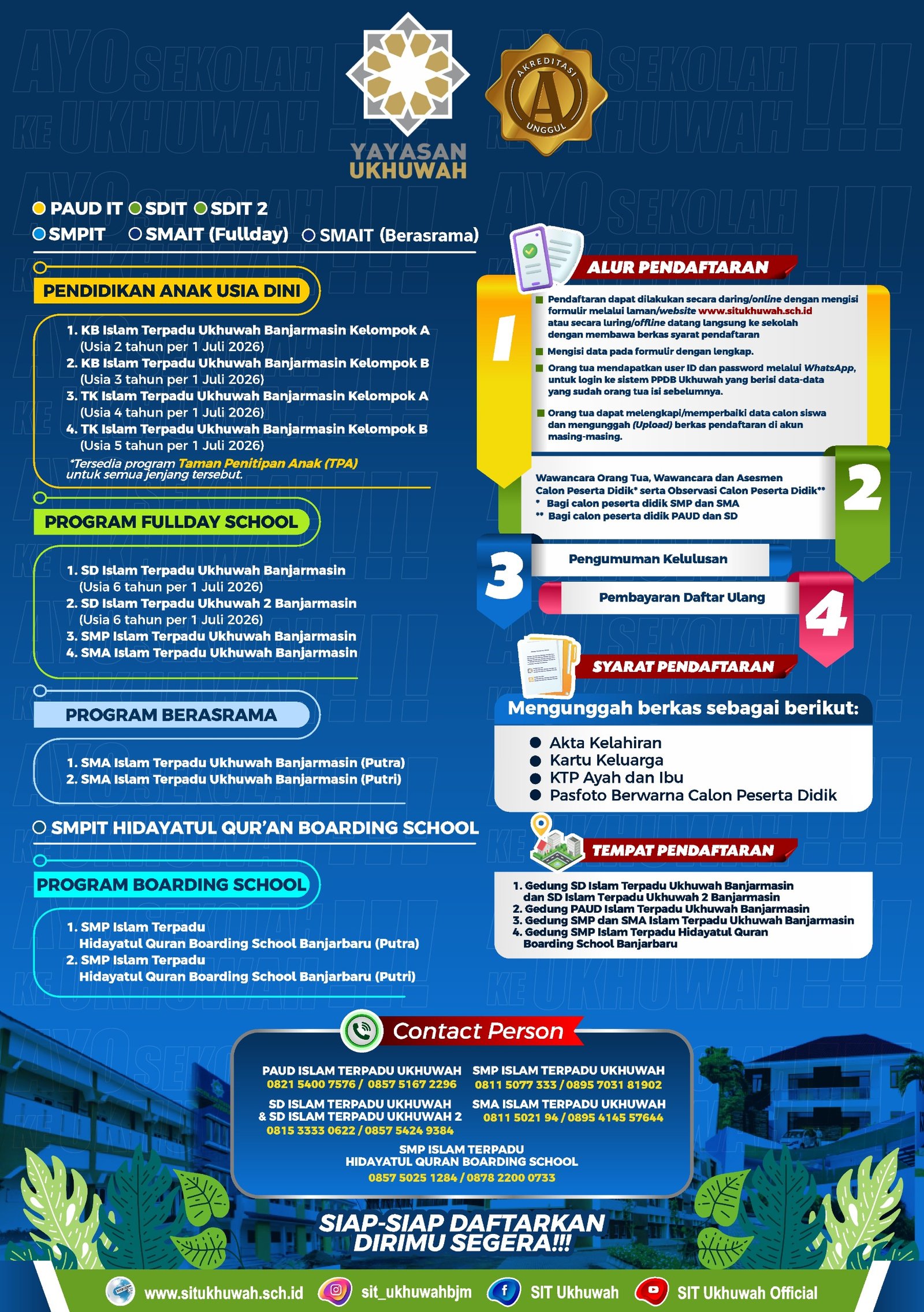 Melalui website ini, kami berharap dapat memberikan informasi yang jelas dan transparan mengenai kegiatan sekolah, prestasi siswa, dan segala hal terkait pendidikan di SD Islam Terpadu Ukhuwah 2. Terima kasih atas kepercayaan dan dukungan Anda. Mari bersama-sama membangun generasi penerus yang berakhlak mulia, berpengetahuan luas, dan siap menghadapi tantangan masa depan.