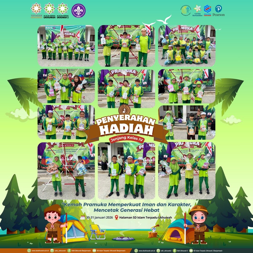 SD Islam Terpadu Ukhuwah dan SD Islam Terpadu Ukhuwah 2 menyelenggarakan kegiatan Kemah Pramuka bagi siswa kelas IV pada Jumat–Sabtu, 30–31 Januari 2026, bertempat di halaman SD Islam Terpadu Ukhuwah dan SD Islam Terpadu Ukhuwah 2. Kegiatan ini mengusung tema “Kemah Pramuka Memperkuat Iman dan Karakter, Mencetak Generasi Hebat” sebagai upaya pembinaan karakter melalui kegiatan kepramukaan yang terintegrasi dengan nilai-nilai keislaman.